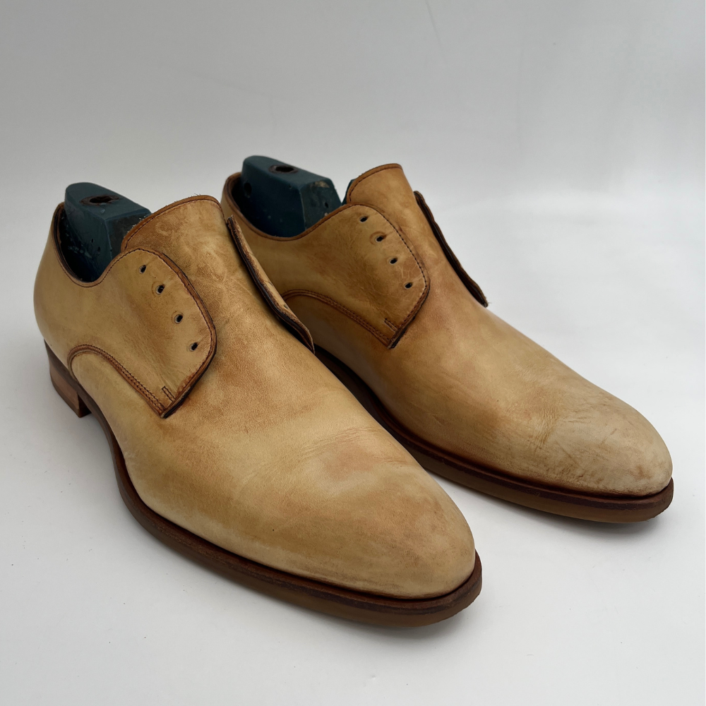 Soluția Modernă: Aici intervine Casali. Folosim protecții de la acest producător italian legendar pentru a crea un scut între istorie (pielea fină) și prezent (asfaltul dur). Păstrăm aspectul de fabrică, dar triplăm durata de viață a pantofului.